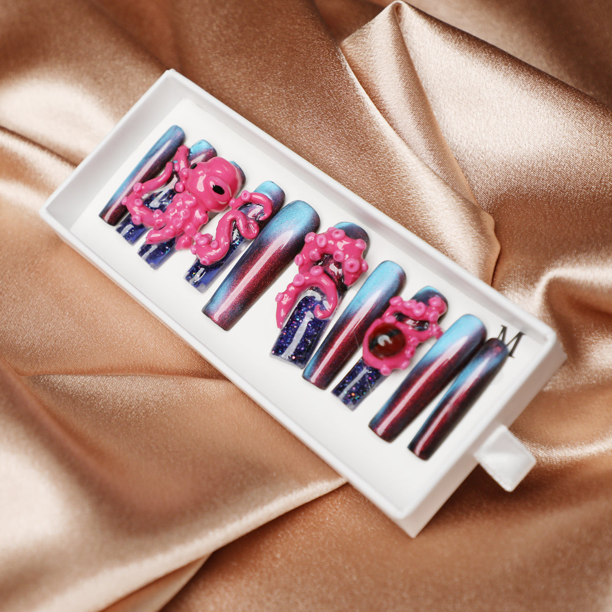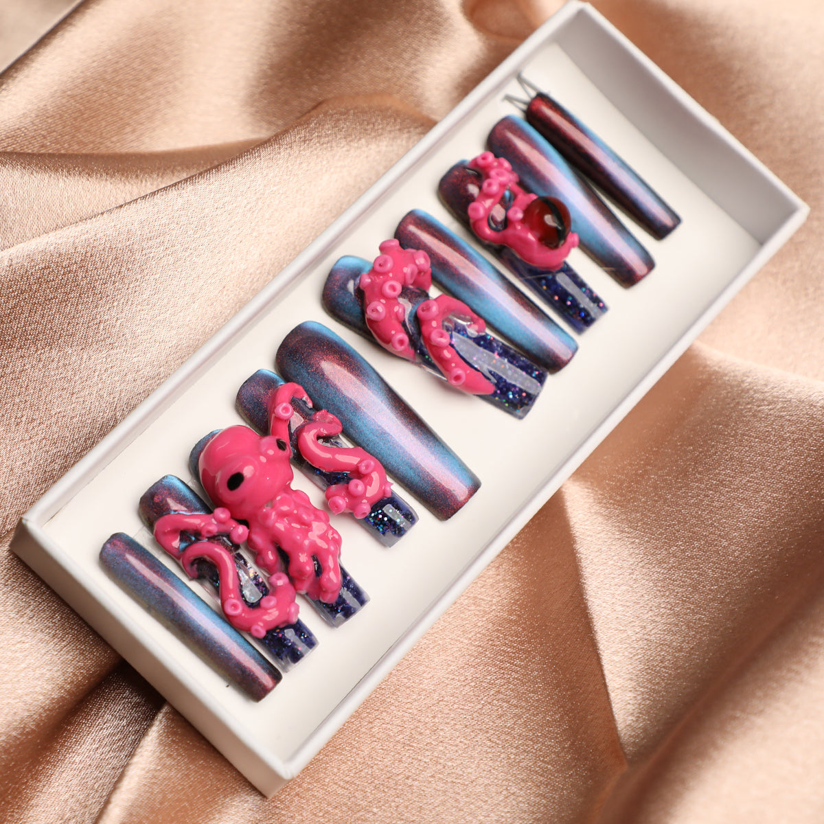✨ Full-length octopus design covering each nail for a dramatic effect