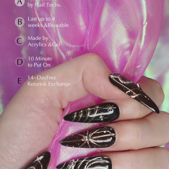 This nail set is ideal for beginners. It features a soft black stiletto shape, perfect for daily wear. The medium length design adds a touch of elegance. đ