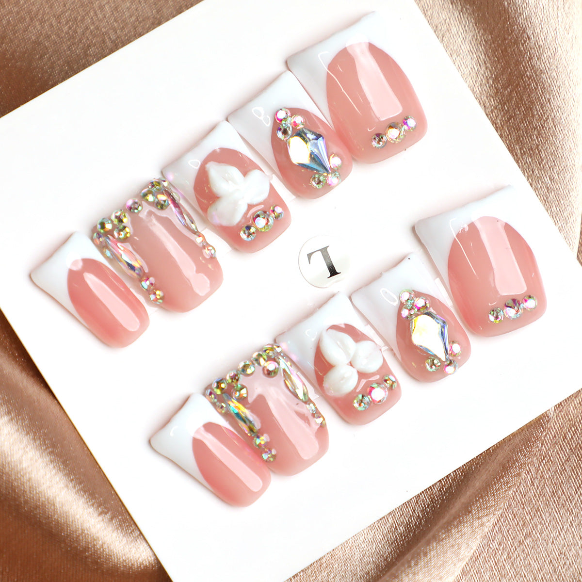 Elegant Sparkle Pink & White French Tip Handmade Press-On Nails Set For Daily Wear Holiday