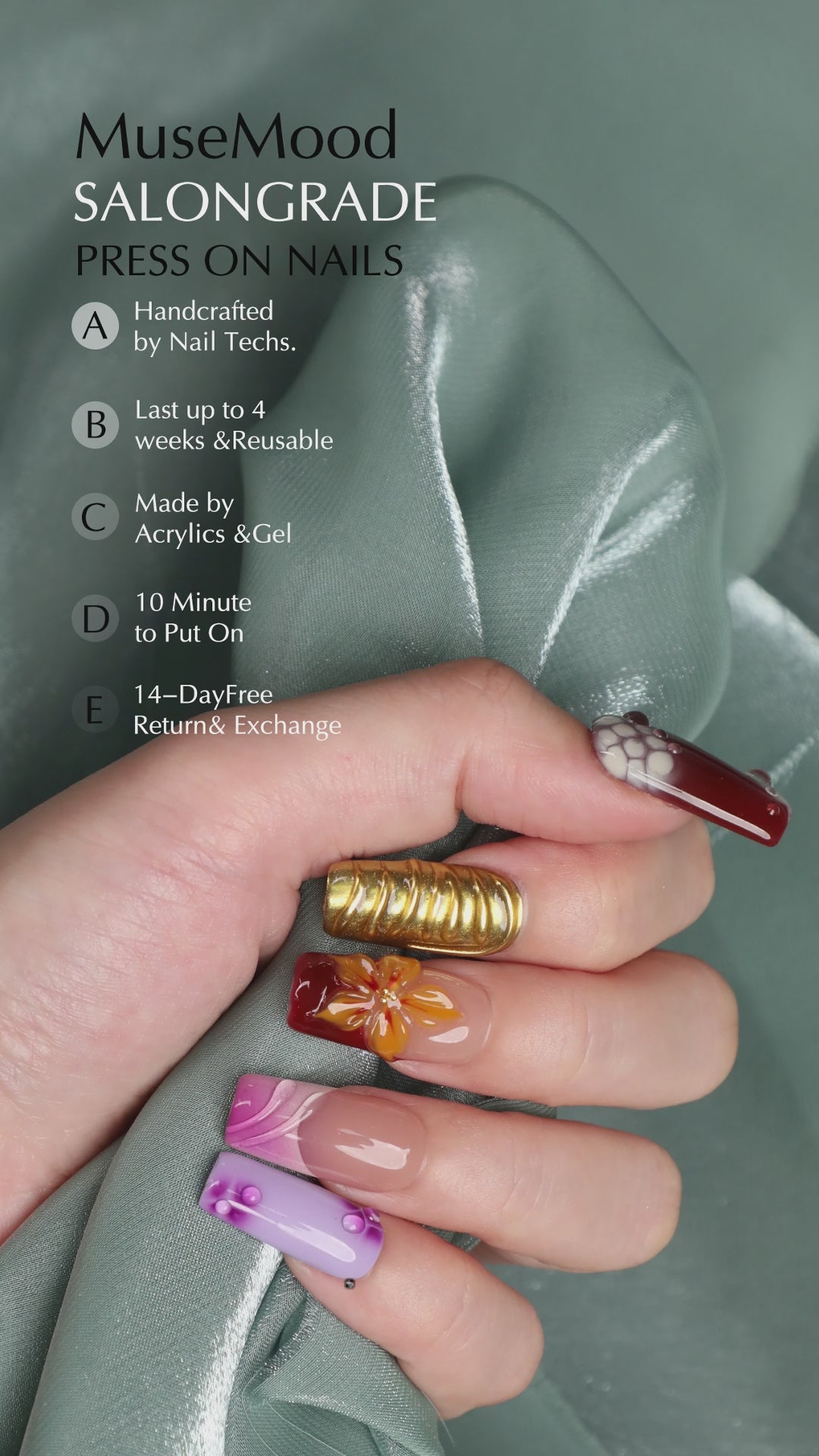 These press-on nails are easy to apply. They provide a quick and convenient way to enhance your look. Ideal for those who want to add a touch of luxury without the hassle. đ