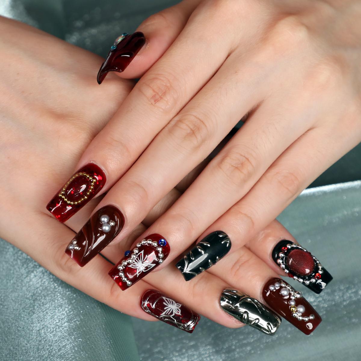 This Garnet Short Square Shape Handmade Luxury Red Press On Nail Set is beginner-friendly. Ideal for daily wear, parties, and dinners. π
