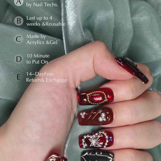 - This Garnet Short Square Shape Handmade Luxury Red Press On Nail Set is beginner-friendly. Ideal for daily wear, parties, and dinners. đ
