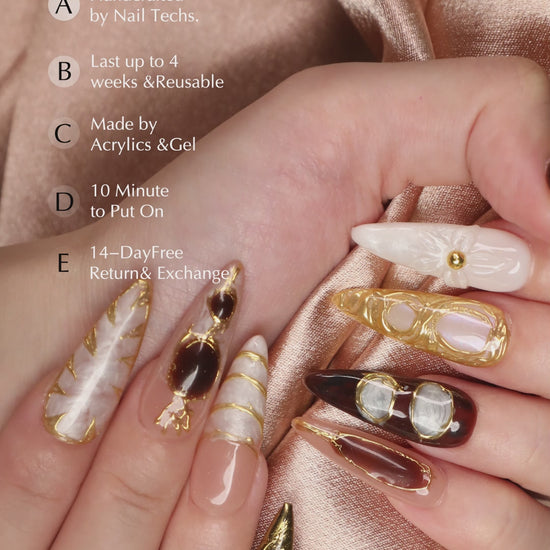 This Gilded Era nail set is the perfect accessory for any special occasion. Elevate your style with this handmade, golden luxury press on nail set. đ