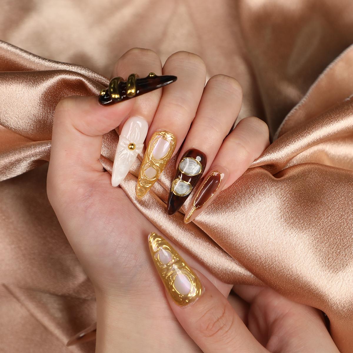đ Gilded Era Medium Length Stiletto Shape Handmade Golden Luxury Press On Nail Set For Party Dinner đ
