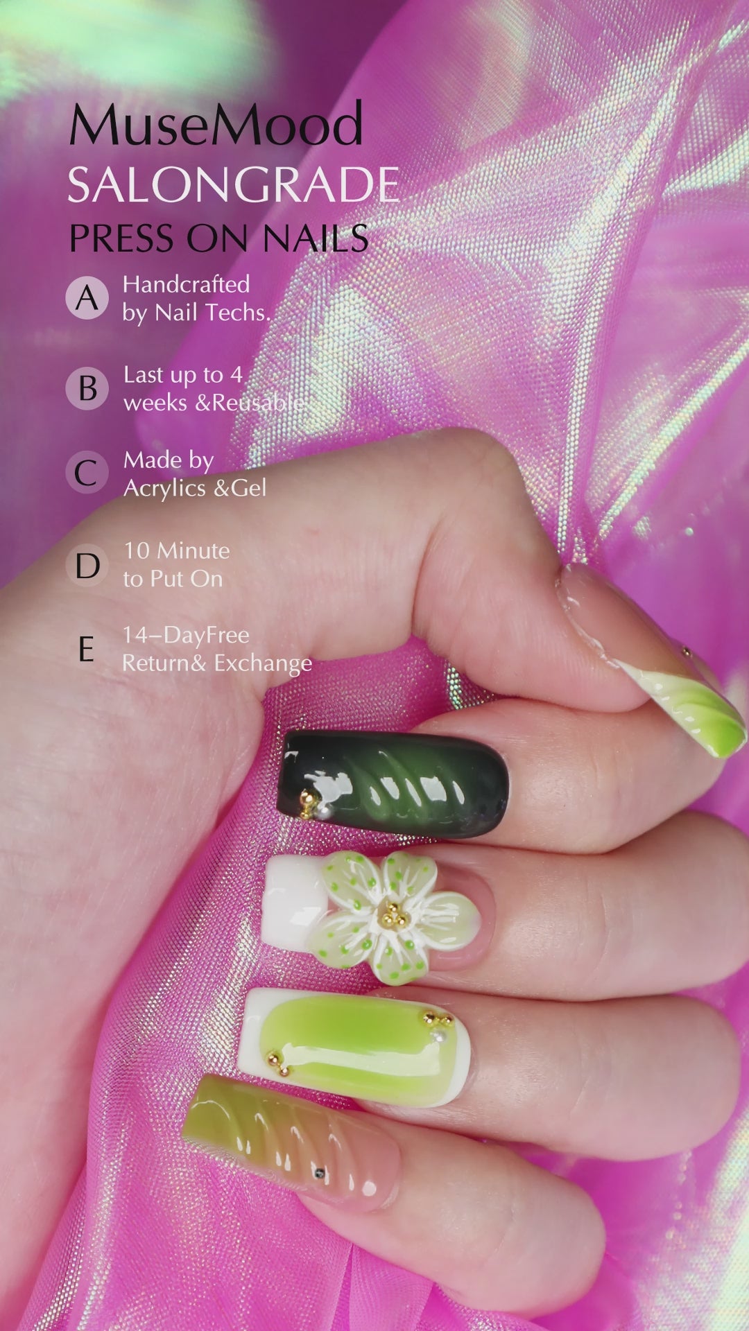 - This Green Breeze Short Square Shape Handmade Luxury Green Press On Nail Set is ideal for beginners. šæ