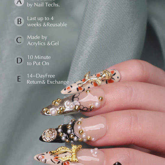 Pearl Reign Press On Nails Gold Stiletto Luxury Handmade Acrylic Press-on Long Nail Set for Elegant Glamorous Look For Dinner Event Party